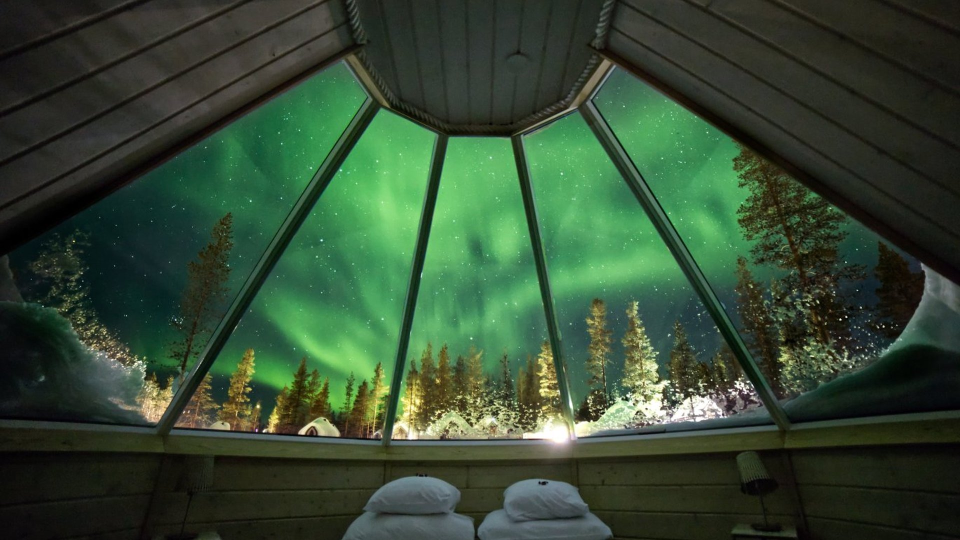Je verblijft in een van de Auora Cabins, waarin je vanuit je bed door het glazen dak de sterrenhemel kunt bewonderen. De cabins zijn zeer sfeervol ingericht en van alle gemakken voorzien, zoals gratis wifi, toilet en douche, interactieve services die via een tablet te bedienen zijn, verwarmd glazen dak en een koffie en thee set in elke cabin.