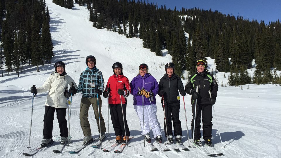 Ik was in Sun Peaks op uitnodiging van het skiresort en zij hadden een compleet programma voor ons opgesteld. Een van de onderdelen was natuurlijk skiën, omdat de beste manier om meer over een gebied te leren, het zelf ervaren is. We werden ingedeeld in verschillende skigroepen. Naast deelnemers van de reis zaten er in elke groep ook mensen die in Sun Peaks wonen en werken. Superleuk, zo’n combinatie! En zo leer je het gebied ook écht kennen. Mijn groep werd vergezeld door Nancy Greene, de Olympisch kampioene die onder andere ooit is uitgeroepen tot atlete van de eeuw. Nancy is een superleuke vrouw, die wekelijks gratis skitours geeft in Sun Peaks. Ondanks haar leeftijd gaat ze maar door en door, zoveel energie! Ik vond het erg leuk om haar te ontmoeten en skitips van haar te krijgen.