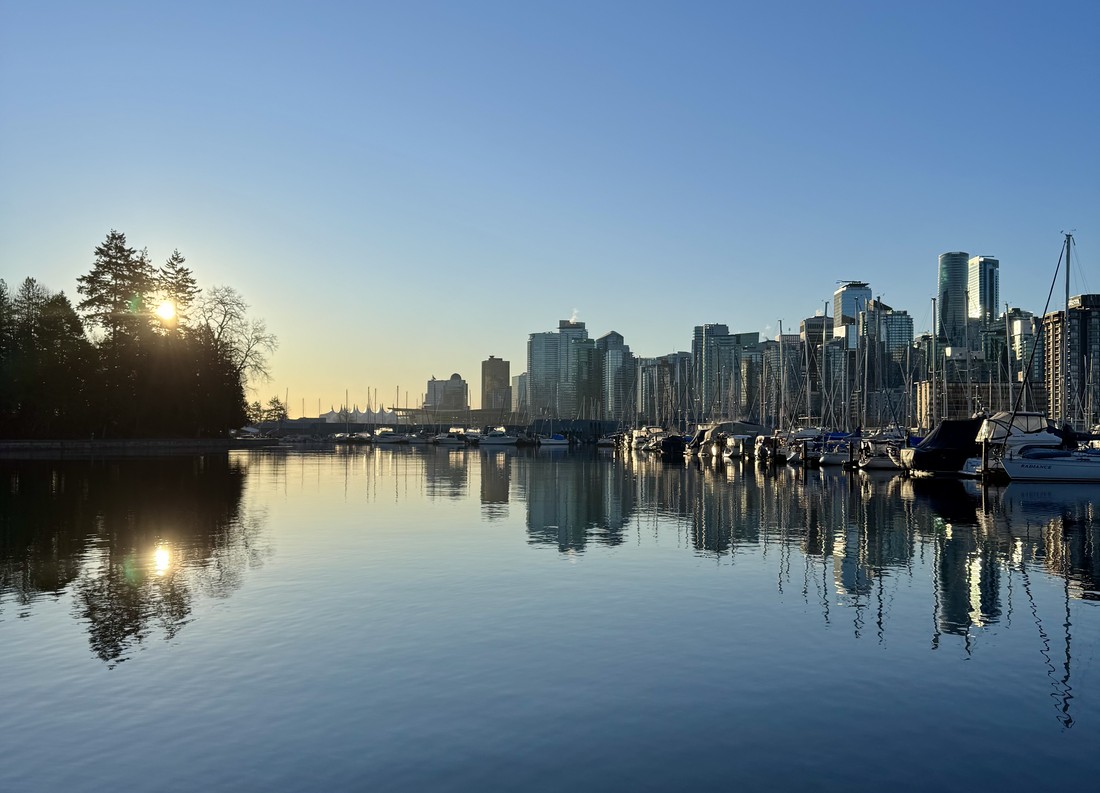 ‘Maak van je jetlag een voordeel!’ – met die instelling besloot ik elke morgen, als ik weer eens heel vroeg wakker was, eerst een korte zwemexercitie te doen. Om daarna te gaan hardlopen in het prachtige Stanley Park. Via de Seawall (met jachthavens, restaurants, opstijgende watervliegtuigjes) kom je dan na de vele moderne hoge woontorens in de groene oase van het park.